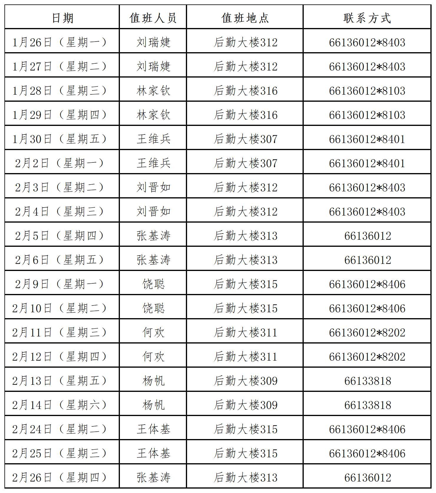 资产与实验室管理部(房屋资产管理处)2026年寒假值班安排